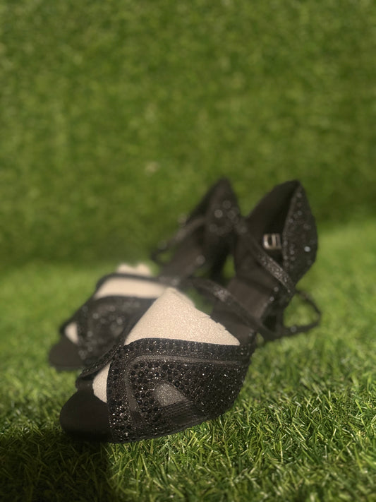 SWDZM BLACK JEWEL SUEDE HEEL SIZE 8.5
