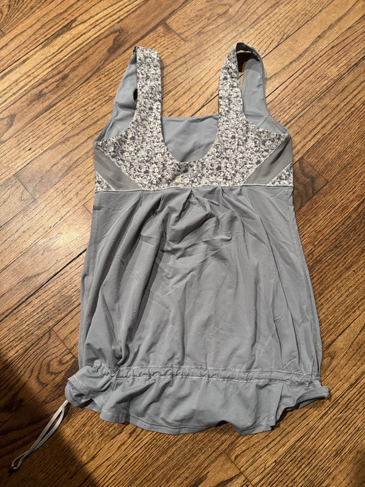 (4) Lululemon Floral Elevate Tank Top W Drawstring Gray Floral
