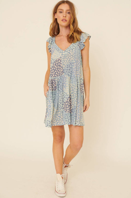 Floral Patch-Print V Neck Ruffle Mini Sundress