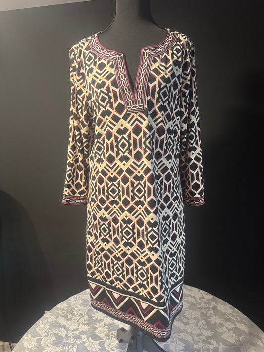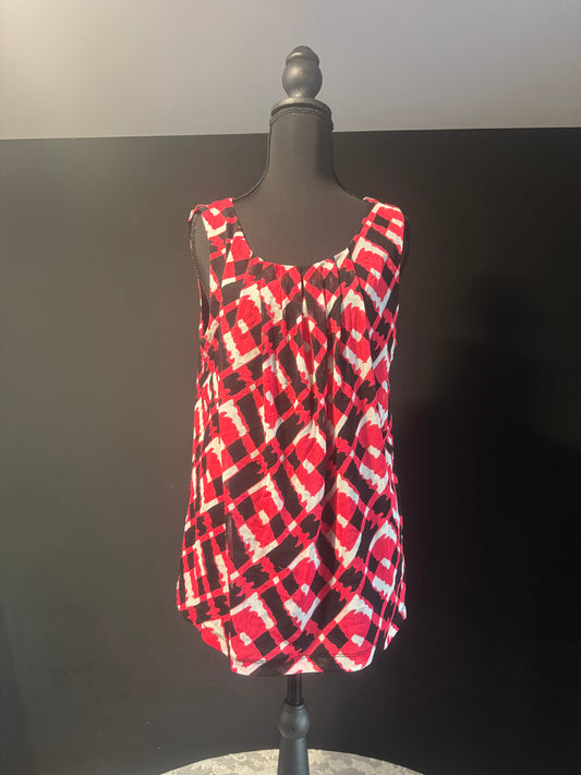 (LARGE) Vintage White House Black Market Red & Black Abstract Polyester Dress