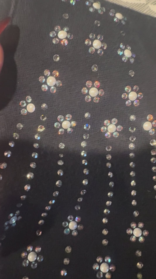 (LARGE) Vintage Christine Alexander Black Jeweled Cotton Blouse