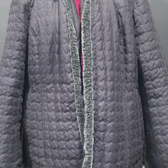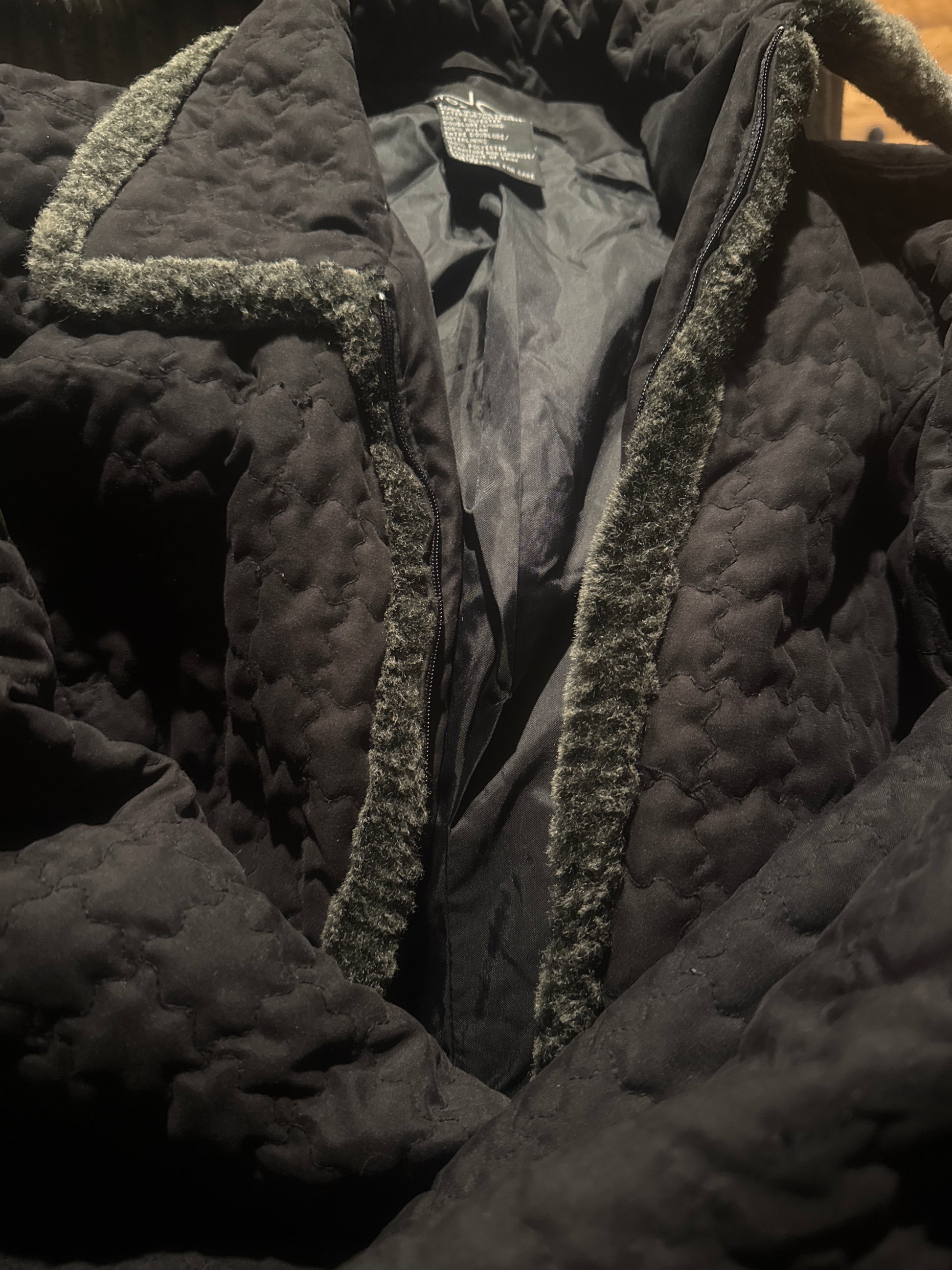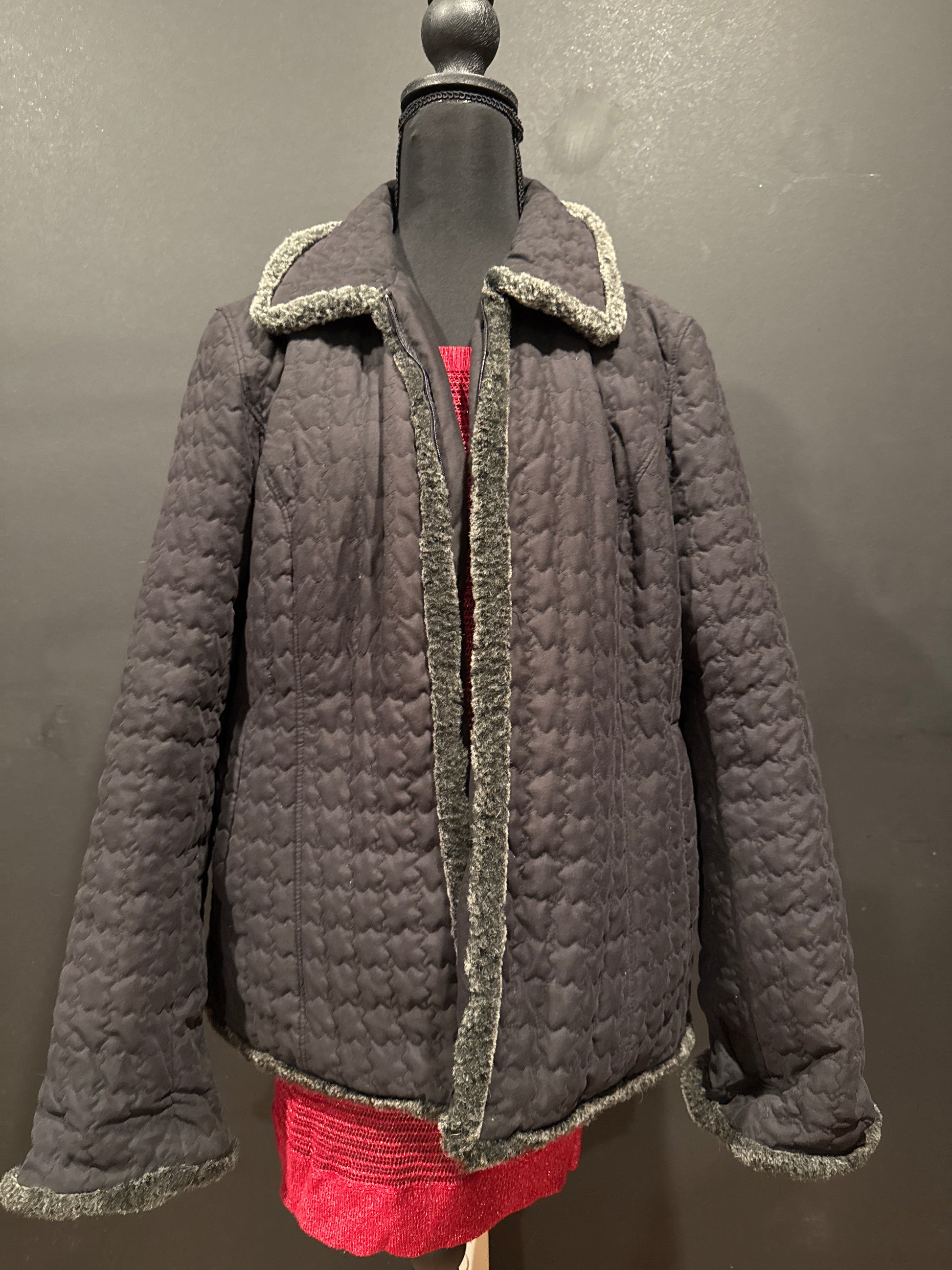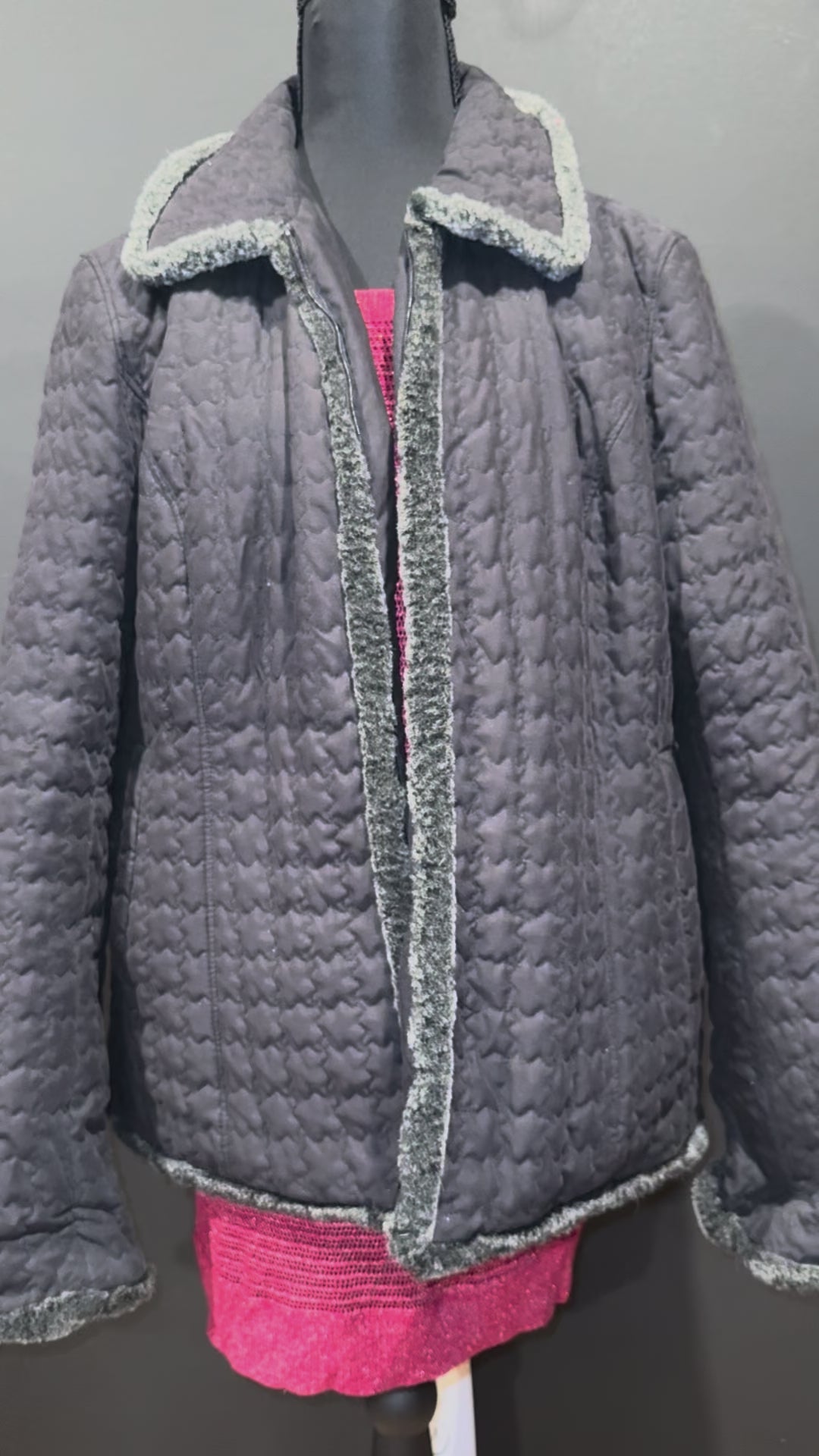 (LARGE) Vintage Utex Design Nylon Fleeced Lined Patterned Black & Grey Zip Up