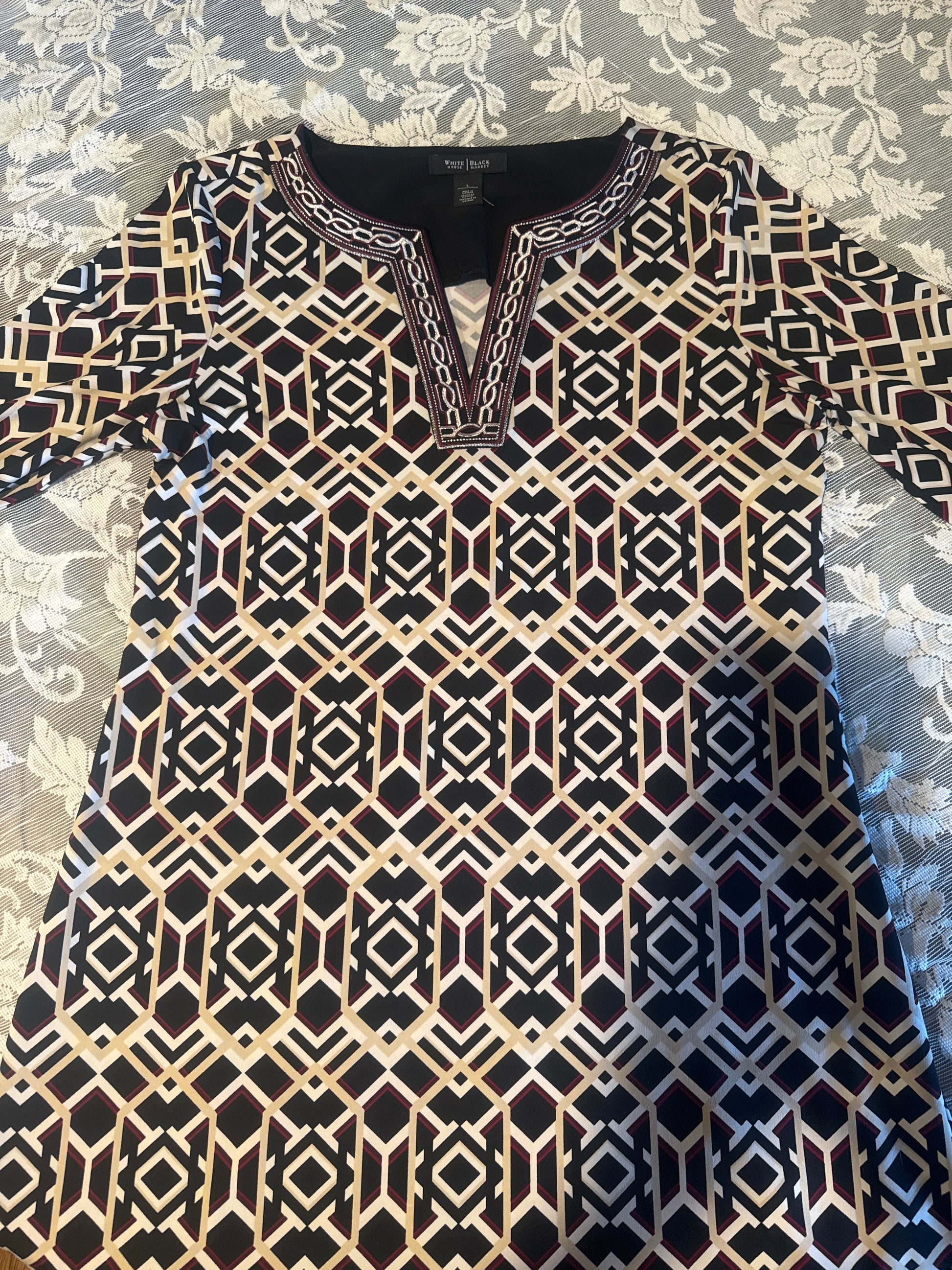 Sleek, modern, and effortlessly flattering — this Vintage White House Black Market dress features a bold red and black abstract geometric print. Crafted from smooth polyester with a comfortable stretch, it offers a chic silhouette that transitions seamlessly from day to night.