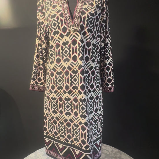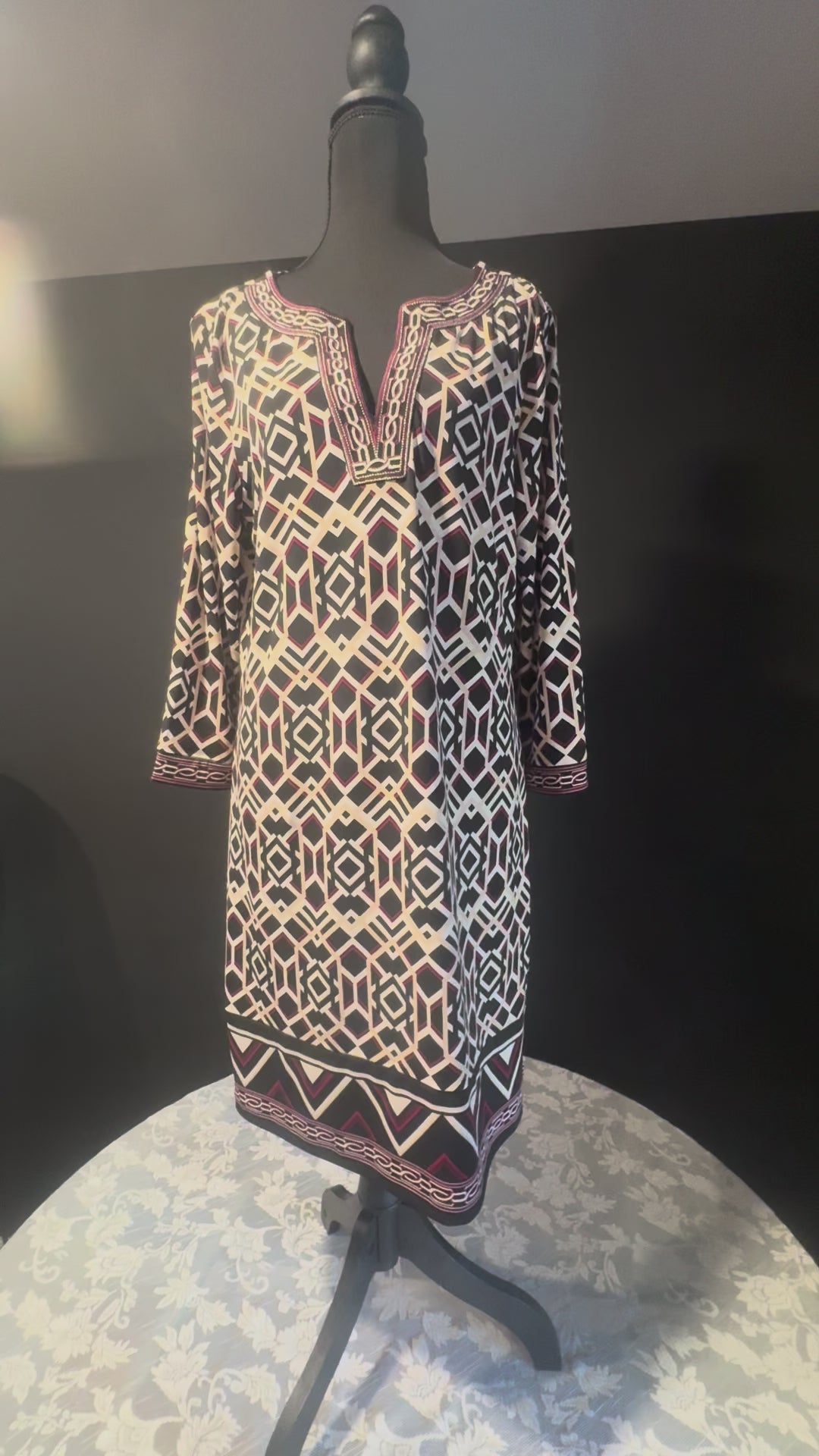 (LARGE) Vintage White House Black Market Red & Black Abstract Polyester Dress