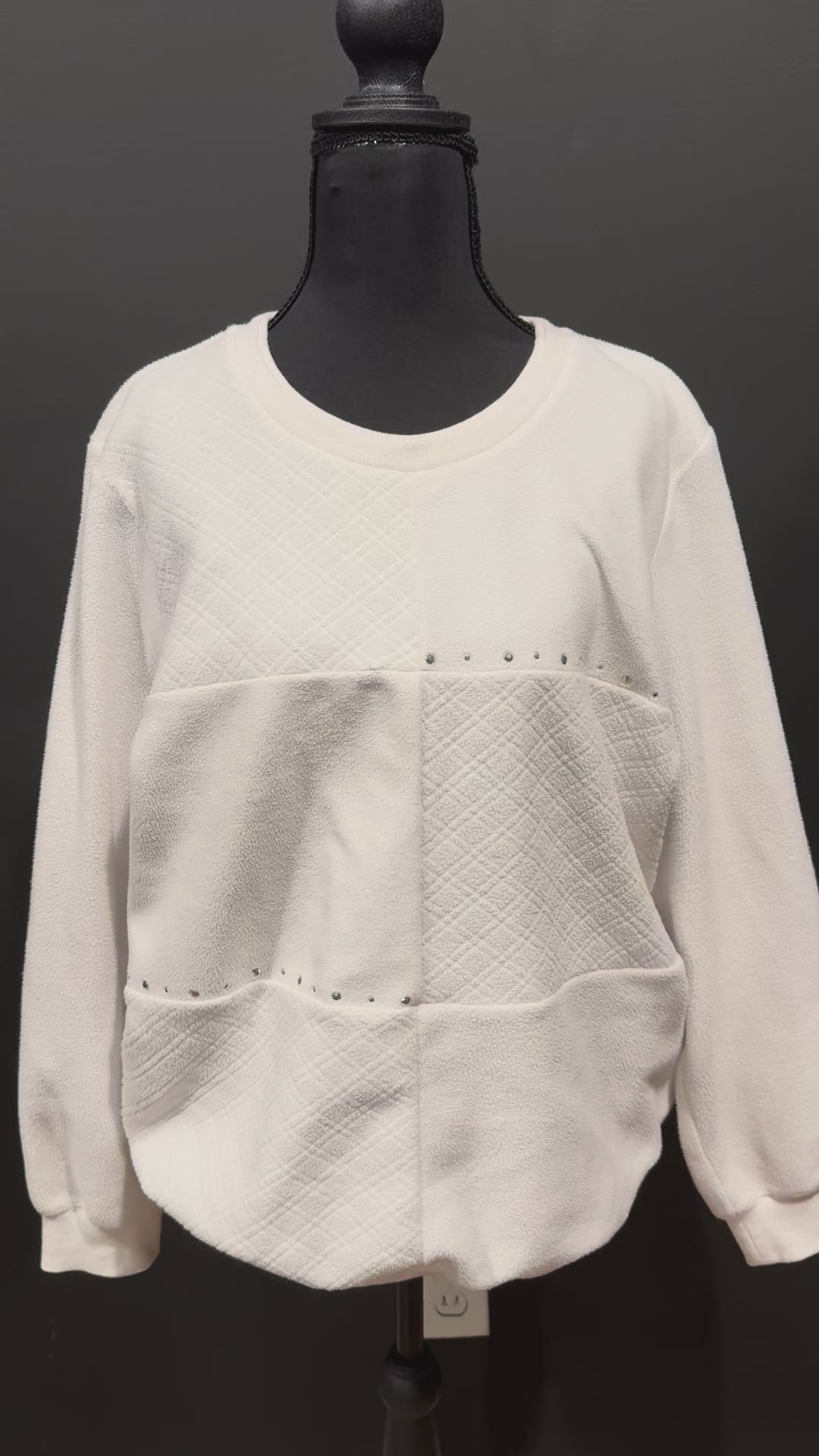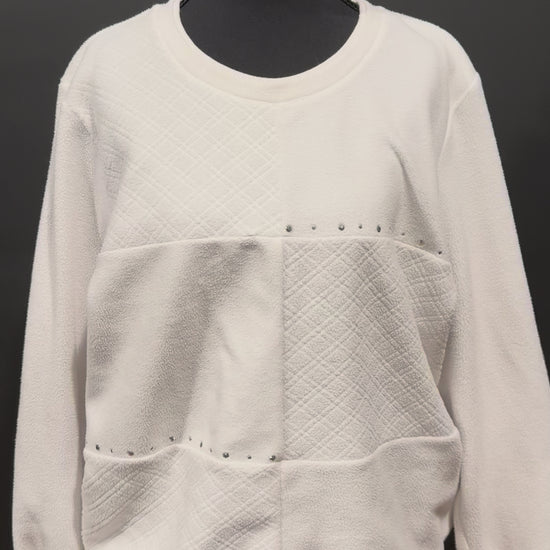 (MEDIUM) Vintage Alfred Dunner Patterned White Fleece Sweater