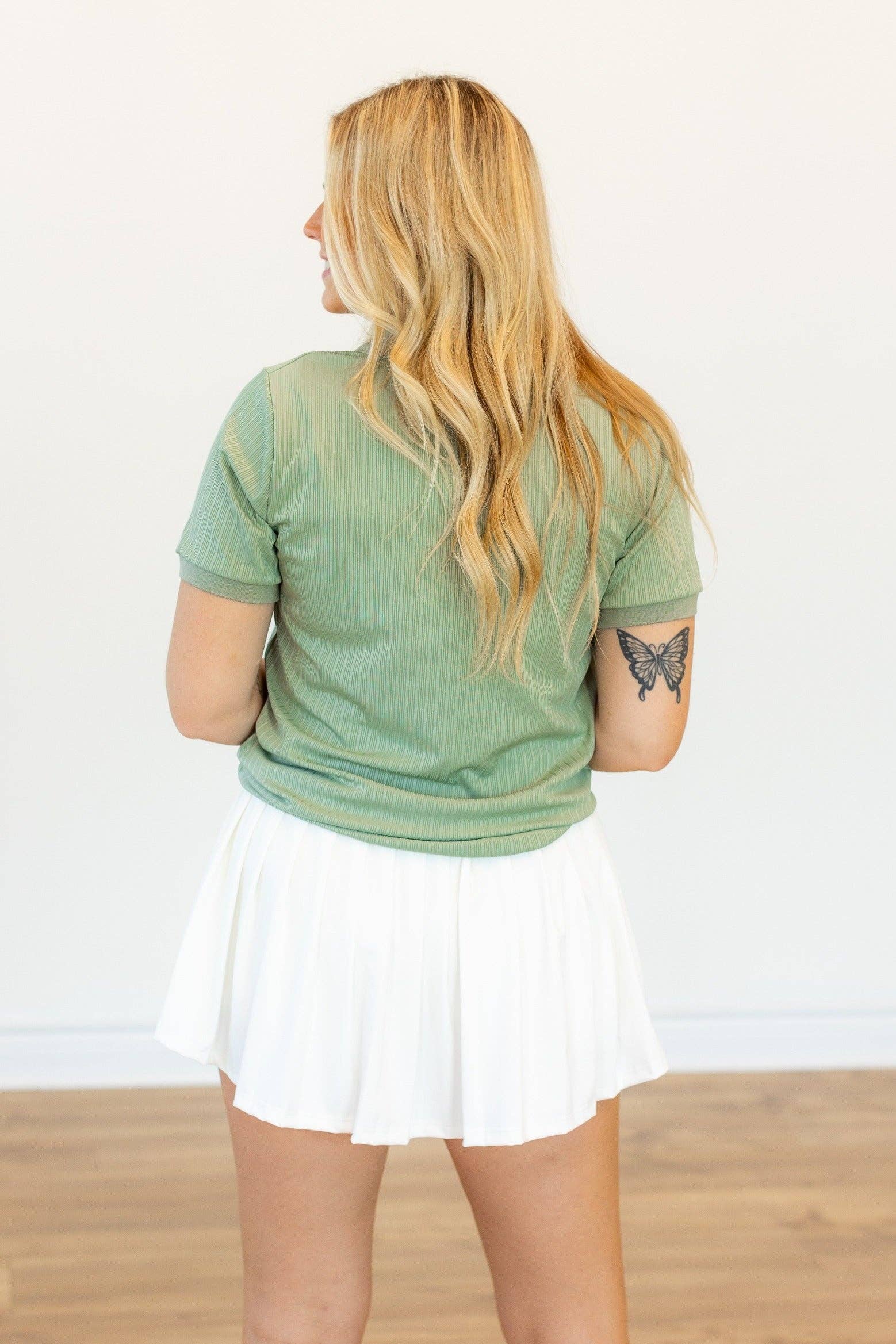 Refresh your everyday style with this Rib Knit Polo Top. Designed for a relaxed fit, it features a flattering V-neck and high-stretch fabric for comfort and ease of movement. The full-length design and moisture-wicking properties make it perfect for a stylish and fresh look anytime.